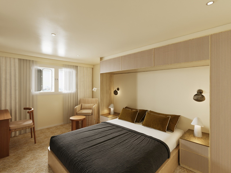The Ocean Twin Stateroom offers a blend of elegance and practical design, featuring a large wardrobe and the option of twin or king bedding. Guests can enjoy the comfort of a spacious bathroom equipped with shower, heated floors, luxury amenities, and a hairdryer. For convenience and comfort, the stateroom includes individually-controlled air conditioning, international 240V sockets, USB charging points, and wall-mounted reading lamps. Entertainment needs are met with a flat-screen TV paired with an on-demand entertainment system. Additionally, guests are provided with complimentary and unlimited Wi-Fi, although connectivity may vary based on navigation and latitude.